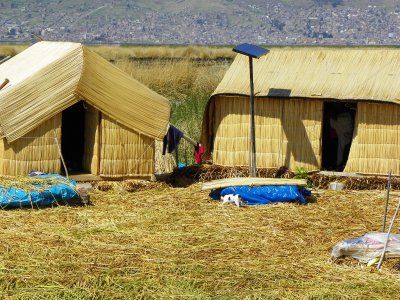 Острова Урос, типичные жилые дома. Солнечные батареи тоже уже типичны.
