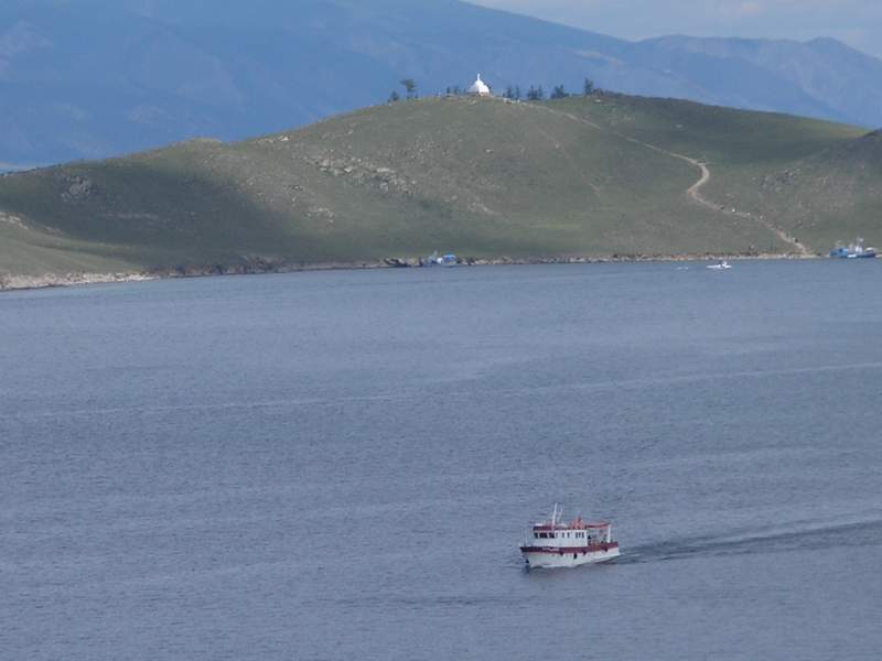 На острове Огой видна белая ступа - культовое буддийское строение