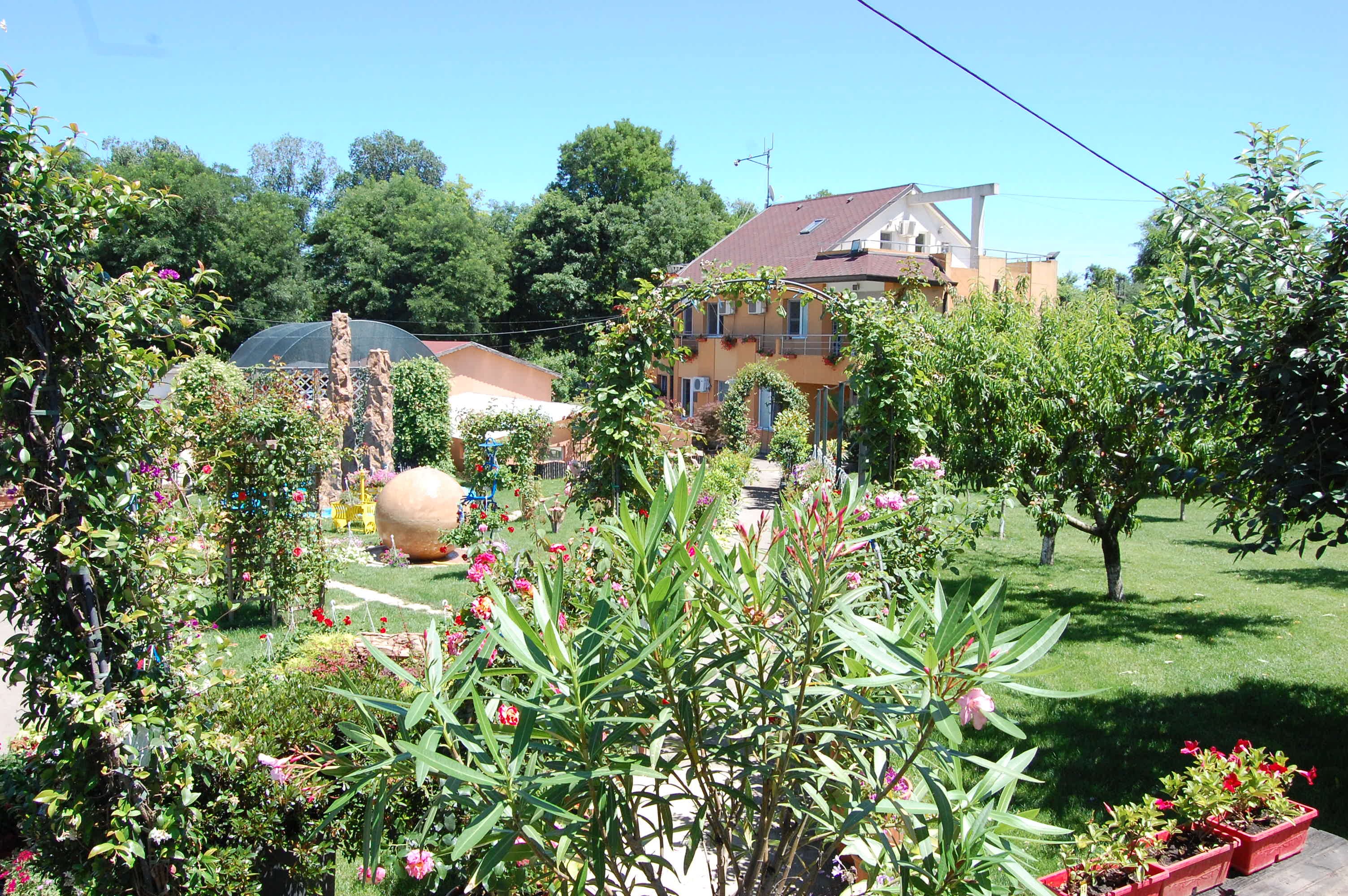 Лужайка перед входом в теплицы