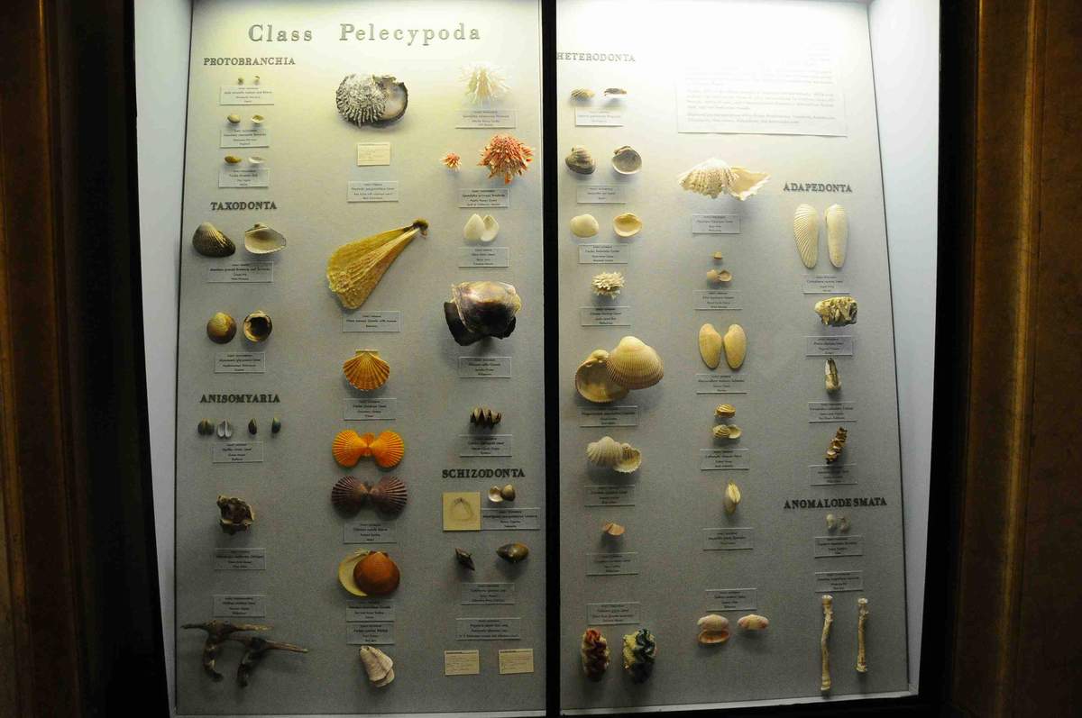 Нью-Йорк. Музей Естественной истории. Стенд, посвященный пелециподам - двустворчатым моллюскам, появившимся еще в кембрийский период.