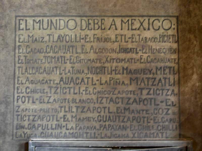 Президентский дворец. Гордый список с/х продуктов, которые Мексика дала миру. И там не только табак и кукуруза...