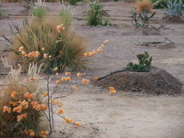 Монстрозная Euphorbia lactea прекрасно соседствует с бугенвиллеей и декоративными злаками.