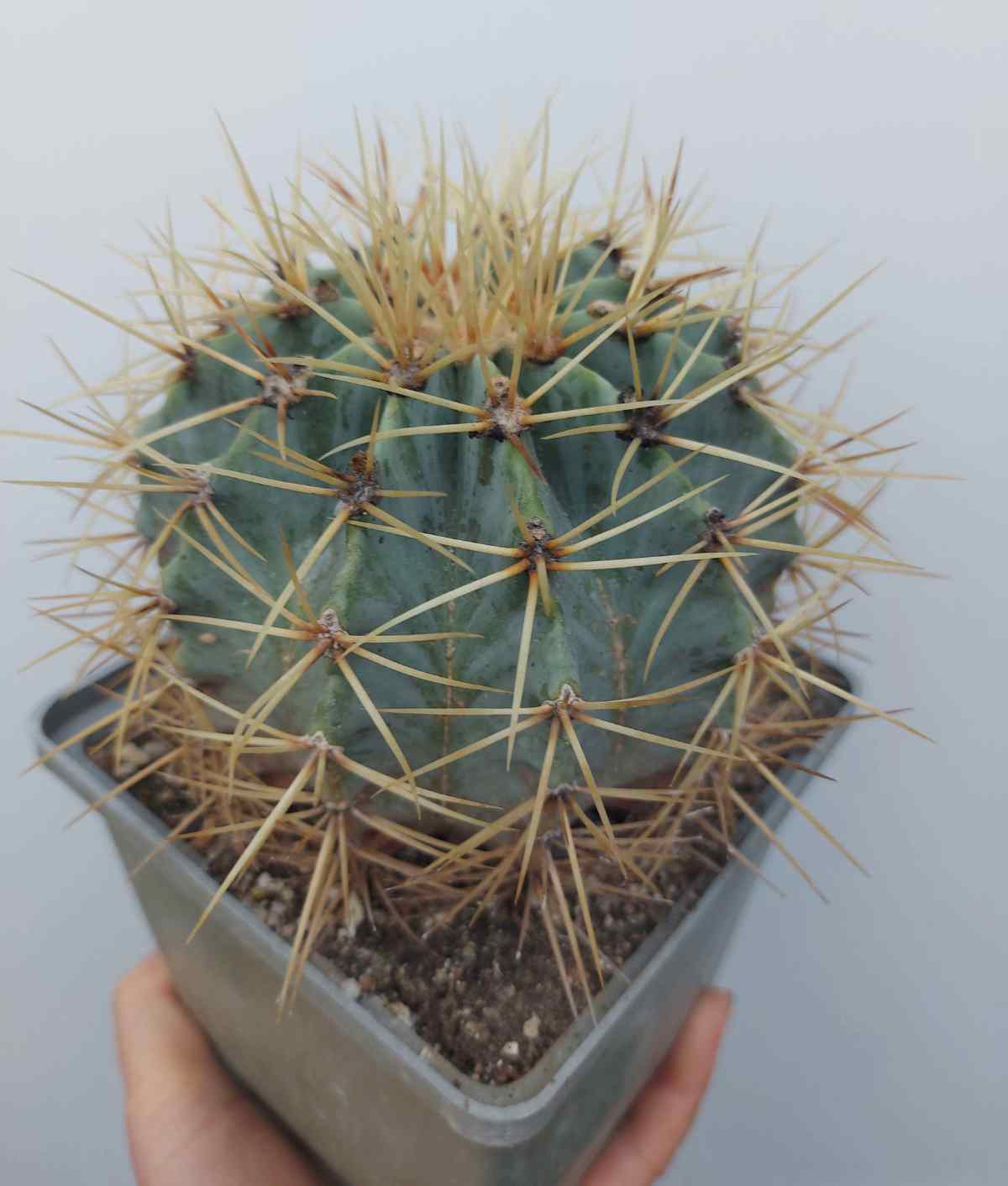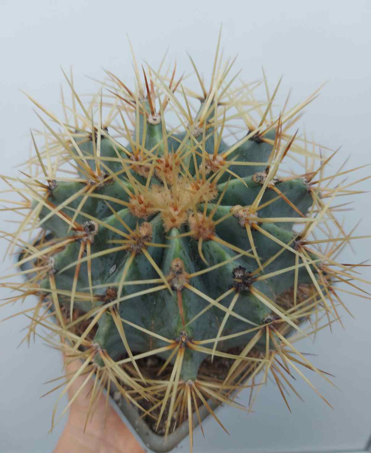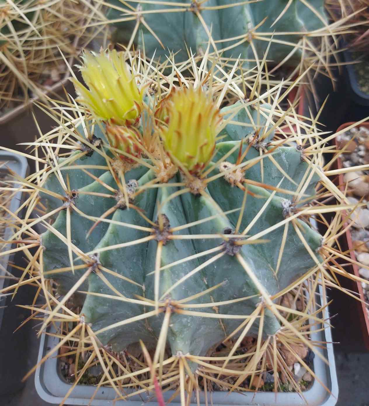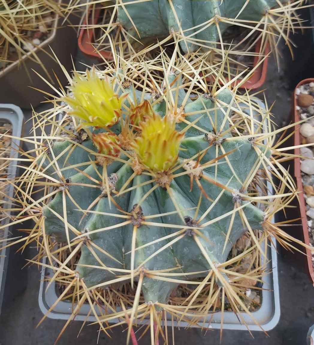 Ferocactus glaucescens – горщик 12х12 см, рослині більше 15 років, вже не перший рік навесні цвіте.